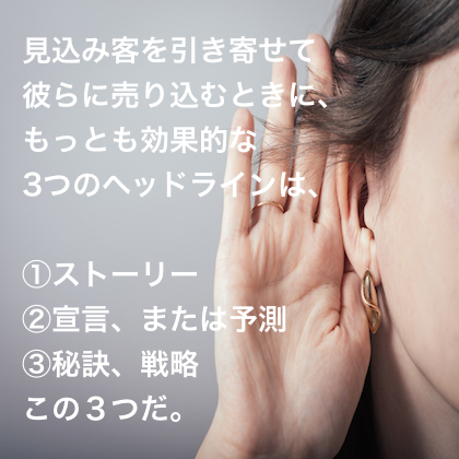今日は「短期間で売る」ということについて話します。例えば、PPC広告などであなたのことを知らない見込み客を引き寄せて、彼らに売り込むときに、もっとも効果的なヘッドラインを3種類お教えしましょう。